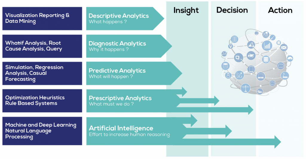 대규모 데이터 처리에 인공지능 기술을 사용하여 비즈니스 문제를 해결하는 것은 행동 수행 후의 평가 단계까지 더 나아가는 데 도움이 될 것입니다.